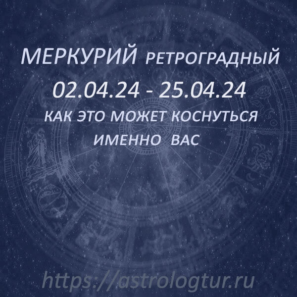 с 02.04.24 по 25.04.24 Меркурий ретроградный Общее значение ретроградного движения Меркурия. Чем нам это грозит? В период ретроградного Меркурия мы не можем мыслить ясно и четко, как обычно, поэтому надо быть особо бдительными, чтобы не допустить ошибок! «Семь раз отмерь, один раз отрежь» - главное правило для этого периода!