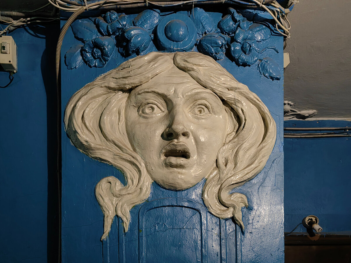 Испуганно-устрашающие женские образы (маскароны) в парадных доходного дома братьев Нилаевых (Петербург)
