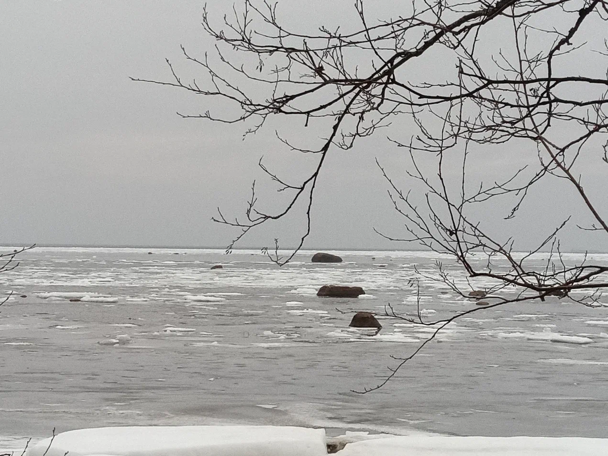 Играть в Титаник не стала, поехала дальше в сторону Шепелевского маяка. С парковки нашелся выход в воду - как будто канал во льдах.