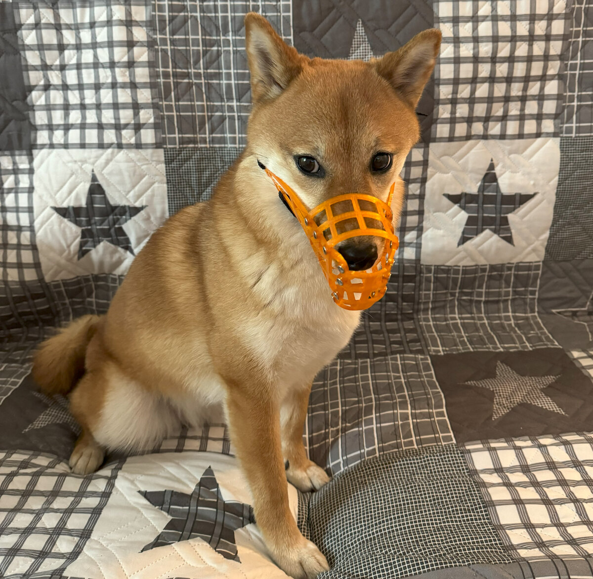 Сиб - он хоть и гордый самурай, но когда речь заходит о неприкосновенной тушке, то просыпается капризная ромашка. Лапки - не тронь, щетку уберите прочь от моей шерстки, ну а нос вещь настолько ценная, что только целовать и можно. Поэтому намордник пришлось подбирать долго и мучительно. Мы сразу отмели все варианты из металла и ремней. Выбирали из пластика. Особенно мне нравились виды беговых намордников, поэтому смотрели варианты подобного типа. Ну и, конечно, хотелось чтобы сиба выглядела в наморднике гармонично, а не как Ганнибал Лектер. В итоге на озоне выбрали намордник фирмы GLUC - это аналог беговых намордников чешского производства. Его можно использовать для спорта, например, курсинга, ну и просто для прогулок. Для Дайки заказывали размер S в оранжевом цвете, и он идеально ей сел. Уговорила нашу девушку попозировать в нем для вас! На некоторых фото видно насколько она "счастлива" ))) Зимой мы забросили тренировки с намордником, поэтому Дайки большого восторга при одевании не