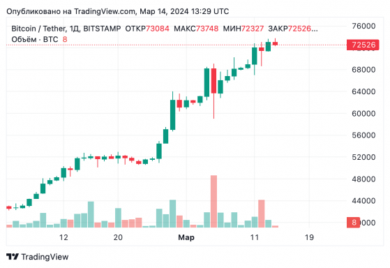 Бэзил Мэр (Basile Maire) считает, что экосистема Биткоина уже входит в шоковое состояние, характеризующееся значительным сокращением доступности актива, когда скорость накопления ВТС со стороны спотовых биржевых фондов ETF на биткоины значительно превышает скорость добычи новых монет. Вечером четверга, 14 марта, биткоин торгуется в пределах $ 72 300 – $73 327. Первая криптовалюта демонстрирует незначительное снижение (на 0,03% за последние 24 часа). Однако на фоне устойчивого дисбаланса спроса и предложения это небольшое снижение контрастирует с устойчивым ростом на 45,97% за последний месяц. Ранее аналитики инвестиционной компании Bernstein заявили, что рыночная капитализация биткоина составит $3 трлн к 2025 году, а эфира — возрастет до $1,8 трлн. Читайте оригинальную статью на сайте Bits.media