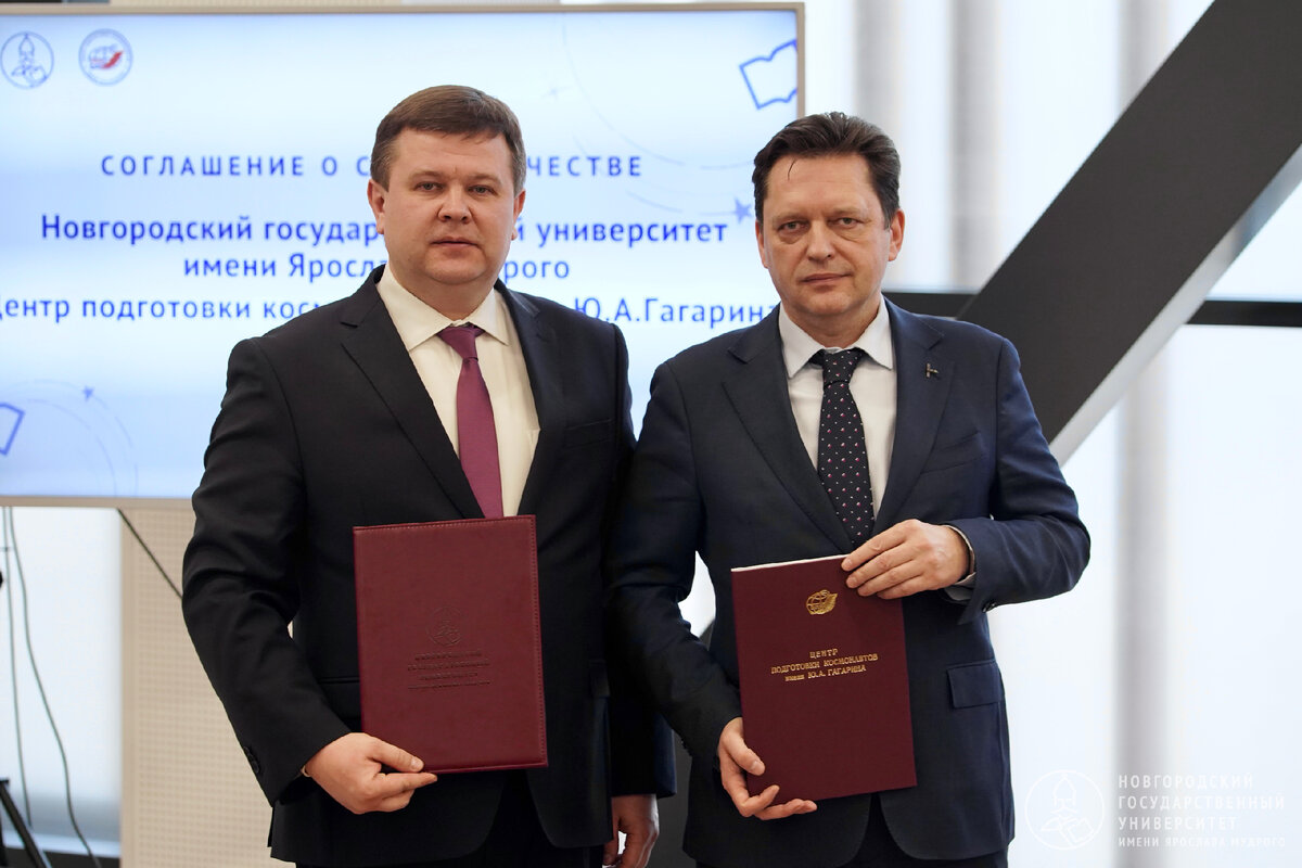 Продолжается визит делегации Центра подготовки космонавтов имени Юрия Гагарина в Великий Новгород. Он проходит в рамках проекта НовГУ «Городской лекторий» – «День космоса», приуроченного к 90-летию со дня рождения Юрия Гагарина. Космонавты Денис Матвеев и Олег Артемьев, а также начальник Центра Максим Харламов и начальник координационно-плановой службы Денис Ядренцев посетили ИНТЦ «Валдай». Во встрече приняли участие ректор НовГУ Юрий Боровиков, проректор по внешним связям и международной деятельности Анастасия Новикова, проректор по инновационному развитию Константин Харламов, директор Политехнического института, студенты профильных направлений подготовки. В рамках визита было заключено соглашение между ЦПК и Новгородским университетом. Документ подписали ректор НовГУ Юрий Боровиков и начальник ЦПК Максим Харламов. — Я горжусь таким сотрудничеством, которое ведет нас к звёздам, — отметил Юрий Боровиков. — Это очень правильная работа, которую мы делаем вместе с правительством региона и