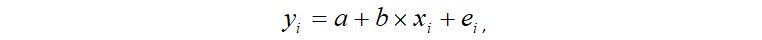 где i – номер пары наблюдений, yi – значение отклика, соответствующего i-ой паре наблюдений, хi – значение фактора, соответствующего i-ой паре наблюдений, ei – случайная ошибка, соответствующая i-ой паре наблюдений.