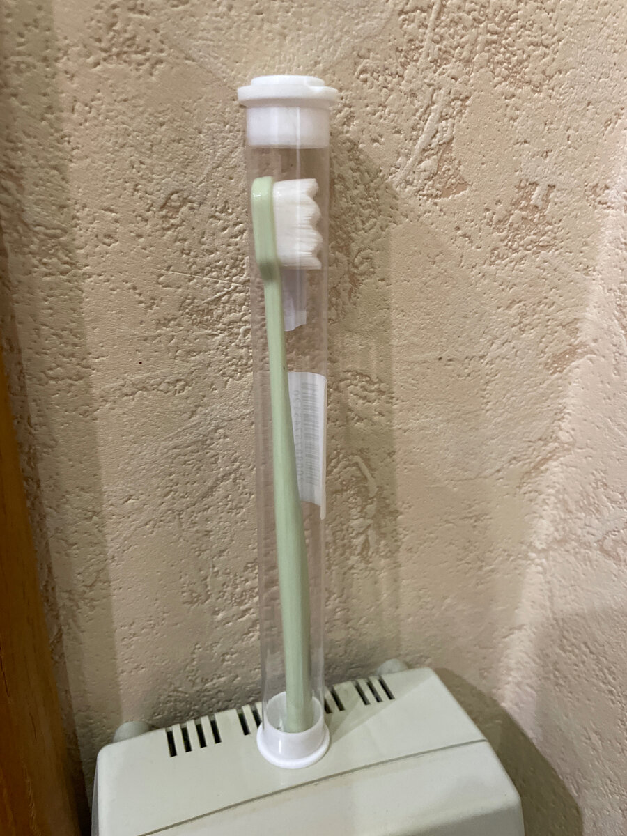 Сходили на днях с Бруняшей на осмотр к ветеринару 👩⚕️, все хорошо 👍🏻 НО 🗿на дальних зубках уже есть зубной камень 😩 Нам посоветовали купить зубную щетку, какую-то супер-пупер 👏 , в колбе правда ее не оказалось тогда в продаже, сказали прийти через неделю 📆 ну чтож, подождём и вот, та да да дааааам! представляю вашему вниманию!!! зубная щетка в колбе Вот она вблизи А вот, что бы вы понимали мое удивление 😧, МОЯ зубная щетка Даже цвет такой же 🤦♀️🤣 🤣главное не перепутать🤣