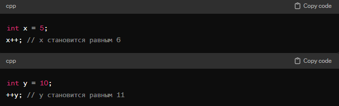 Операторы инкремента и декремента в языке программирования C++ - это важные инструменты, которые позволяют увеличивать или уменьшать значения переменных на единицу. Их применение распространено и широко используется в различных алгоритмах и задачах программирования. В этой статье мы рассмотрим операторы инкремента (++) и декремента (--) в контексте языка C++, а также предоставим примеры их использования. Операторы инкремента и декремента Инкремент (++) Оператор инкремента (++) используется для увеличения значения переменной на единицу. Он может быть применен к числовым типам данных, таким как int, float, double, а также к указателям. Инкремент можно использовать как префиксно, так и постфиксно. Примеры: Декремент (--) Оператор декремента (--) используется для уменьшения значения переменной на единицу. Как и оператор инкремента, он может быть применен к числовым типам данных и указателям. Декремент также может использоваться как префиксно или постфиксно. Примеры: Префиксный и постфиксн