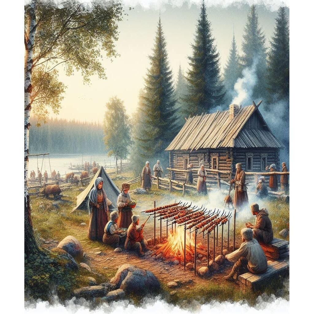 Существует заблуждение, что шашлык не является исконно русским блюдом, однако это не так. Шашлык, как способ приготовления мяса на открытом огне, был известен в России еще до 18 века и назывался “верченое” мясо Кулинарные традиции Древней Руси представляют собой уникальное сочетание вкусов и техник приготовления, которые были тесно связаны с культурой и образом жизни того времени. Мясо играло важную роль в питании древних русичей, особенно во время праздников и торжеств. Верченое мясо, или жареное на вертеле, было одним из популярных способов приготовления мяса. Этот метод позволял равномерно прожарить большие куски мяса, часто целиком, что было идеально для кормления большого количества людей. Вертелы могли быть простыми, вручную вращаемыми устройствами, или более сложными конструкциями с системой шестеренок. Мясо для верчения выбирали тщательно. Чаще всего это были крупные домашние животные, такие как свиньи, овцы и козы. Иногда на вертел попадали и более экзотические виды дичи, нап
