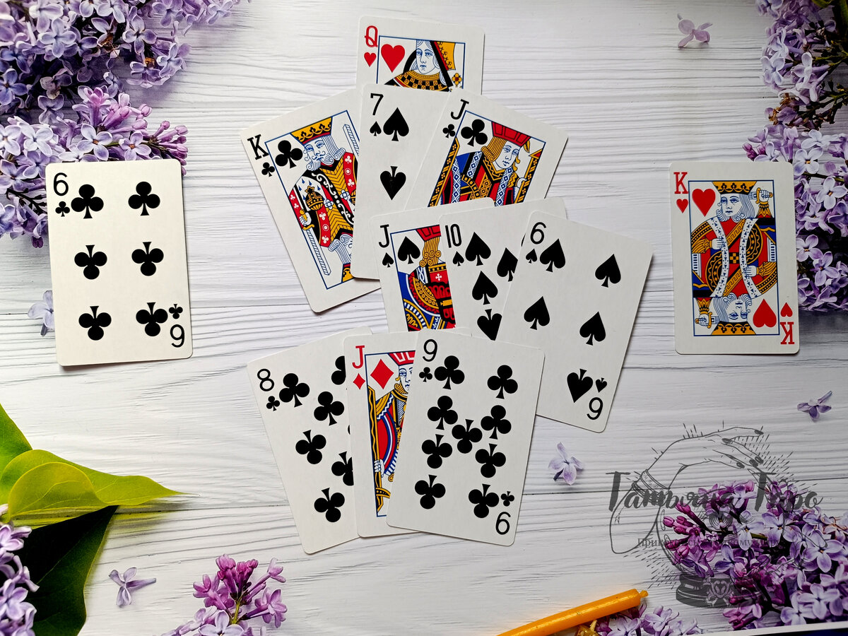 Ближе к подростковому возрасту я уже стала вести тетрадь, где записывала значения каждой карты и что она означает в паре с другими. Бабушка охотно делилась этой информацией, но гадать не разрешала. Я её внимательно слушала, а потом бежала домой и пока информация не выветрилась из моей головы, записывала в ту самую тетрадь. В то же время я купила себе первую колоду. Не помню, сколько мне было точно лет, но колода была у меня в руках. Новенькая. Глянцевая. Из 52-ух карт и двух джокеров. Да, да, колода для покера. Оставалось только отсортировать нужные 36 карт, а остальные убрать. Почему именно из 52-ух карт? Потому что карты для покера были плотные, глянцевые, изображение более чёткое, размер чуть крупнее обычных игральных карт и по ширине они тоже были шире обычных, чем собственно и приманили моё внимание к себе.