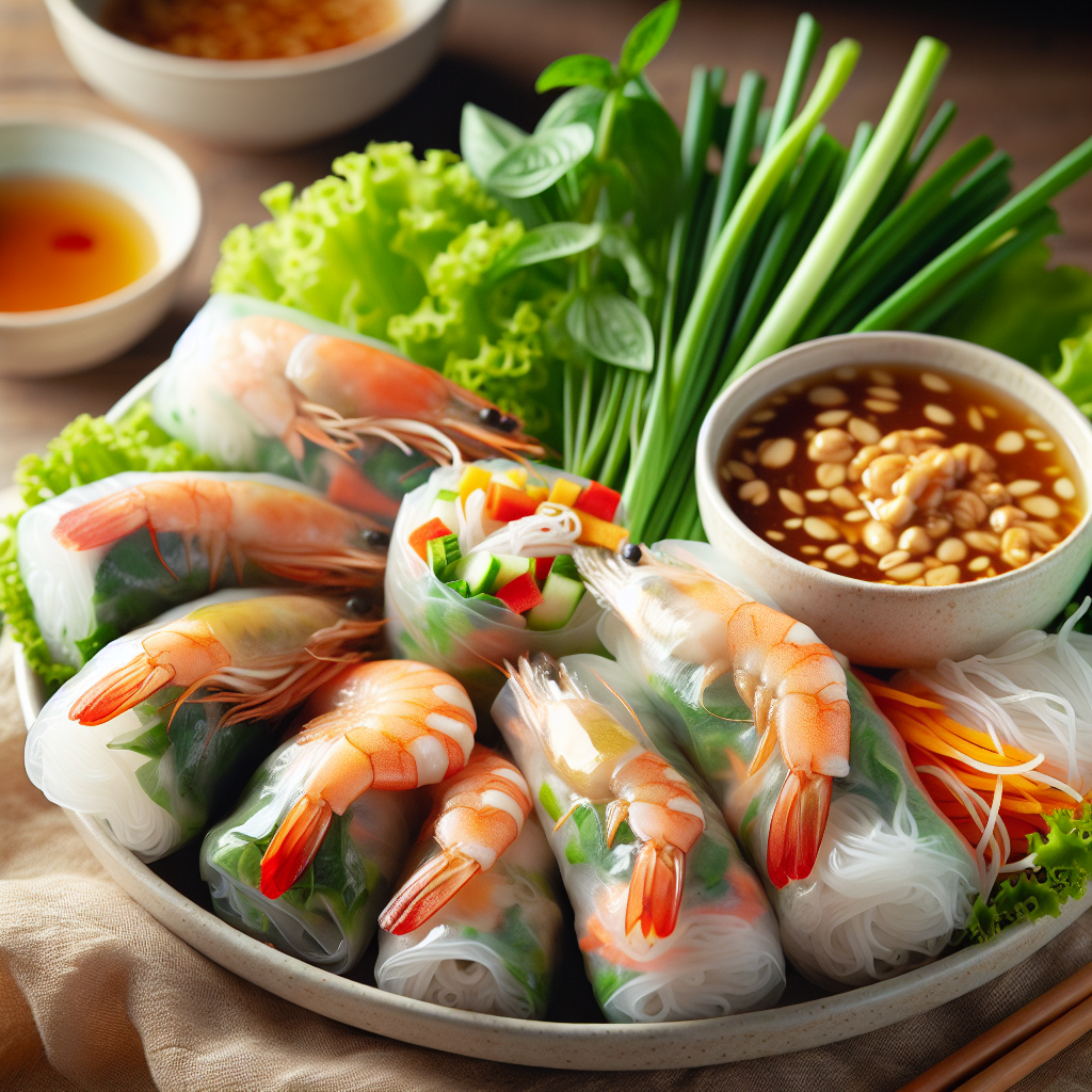 История блюда Гой Куон (Gỏi cuốn): Гой Куон, или вьетнамские свежие роллы, – это лёгкое и здоровое блюдо, которое идеально подходит для жаркого климата Вьетнама. По сути, эти роллы являются свежей версией традиционного жареного ролла (ча гио), которая была адаптирована для более свежих и менее жирных ингредиентов, сочетая в себе овощи, травы, иногда морепродукты или мясо, и лапшу, все это завёрнуто в рисовую бумагу. Gỏi cuốn часто подаётся с кисло-сладким соусом из рыбного соуса, чеснока, лайма и чили. История этого блюда отражает влияние китайской и юго-восточноазиатской кухонь на вьетнамскую культуру. Рецепт Гой Куон (Вьетнамские свежие роллы): Ингредиенты: Для соуса: Приготовление: Для соуса: КБЖУ на один ролл (приблизительно): Эти значения м огут меняться в зависимости от используемых наполнителей и соуса. Гой Куон часто является вегетарианским блюдом, но его можно адаптировать, добавив различные виды мяса или морепродуктов. Это идеальное блюдо для летнего меню.