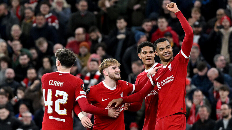 Английский «Ливерпуль» разгромил чешскую «Спарту» в ответном матче 1/8 финала Лиги Европы и вышел в четвертьфинал турнира. Встреча состоялась на стадионе «Энфилд» в Ливерпуле и завершилась со счетом 6:1. Дубли в составе победителей оформили Доминик Собослаи и Коди Гакпо, еще по голу забили Дарвин Нуньес и Бобби Кларк. У «Спарты» отличился Велько Бирманчевич. В первом матче, который состоялся 7 марта в Праге, «Ливерпуль» победил со счетом 5:1. Жеребьевка ¼ финала Лиги Европы пройдет в пятницу, 15 марта, и начнется в 15:00 (мск). В прямом эфире её покажет телеканал «Матч ТВ». Прямые трансляции матчей плей‑офф Лиги Европы смотрите на каналах группы «Матч!», сайтах matchtv.ru и sportbox.ru. Лига Европы. Основной турнир. 1/8 финала «Ливерпуль» (Ливерпуль) — «Спарта» (Прага) — 6:1 (4:1) Голы: Нуньес, 7 (ВИДЕО). Кларк, 8 (ВИДЕО). Собослаи, 10 (ВИДЕО), 48 (ВИДЕО). Гакпо, 14 (ВИДЕО), 55 (ВИДЕО). — Бирманчевич, 42 (ВИДЕО).