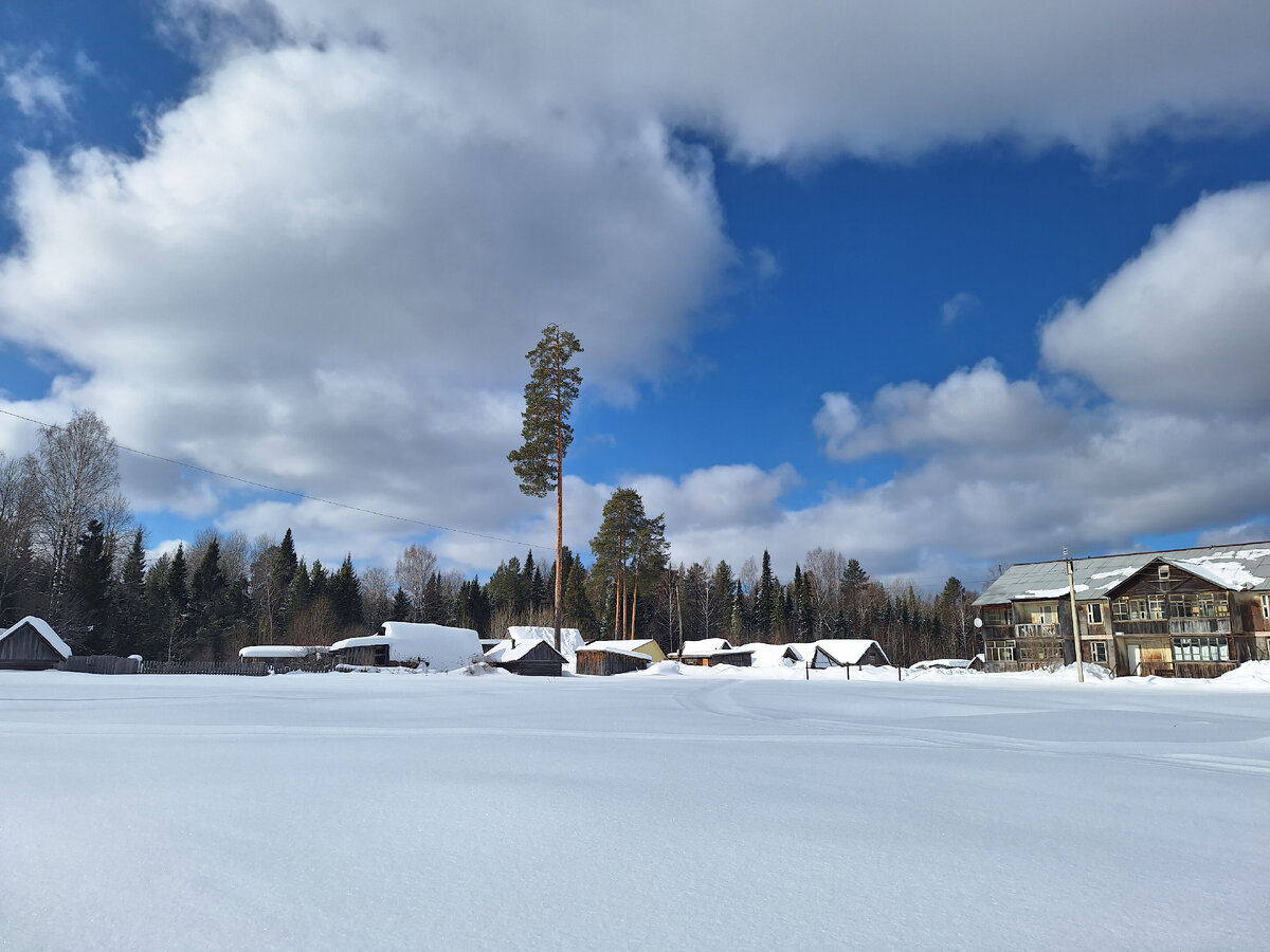 Какая благодать за окном! Надо, надо быстрей выйти, думаешь в голове, а плита в воскресный день не отпускает. Скворчит на плите, а глаза невольно в окно смотрят. Вот облако село на яблоню, а это облачко село на крышу дома. Кучкуются облака, тут уже соединяются. Вот - вот всё покроется одним покрывалом. Ну всё! Успела! Показываю и вам усладу для глаз. Как хорошо! Засмотришься, залюбуешься! На душе - весна! Ах, этот март, этот новый день!