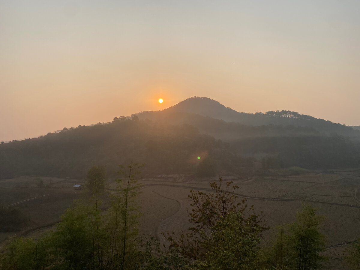 Собирался не спеша, сходил на веранду второго этажа полюбовался восходом. Как же здесь красиво. Холмы, домики, в розовой дымке. Словно очутился в сказочной стране.