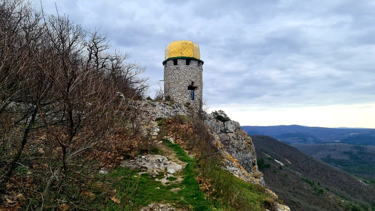 Шулдан переводится как – отдающий эхо или непреступное место. Интересно, что туристов сюда притягивает Башня. Она сложена из каменных блоков, купол выполнен из металла. На фоне обрыва она смотрится очень колоритна. Но весь фокус в том, что это новодел и никакого отношения к монастырю Шулдан она не имеет. В открытых источниках я не нашла данных в опровержении моих слов. Если вы знаете больше, обязательно пишите в комментариях.