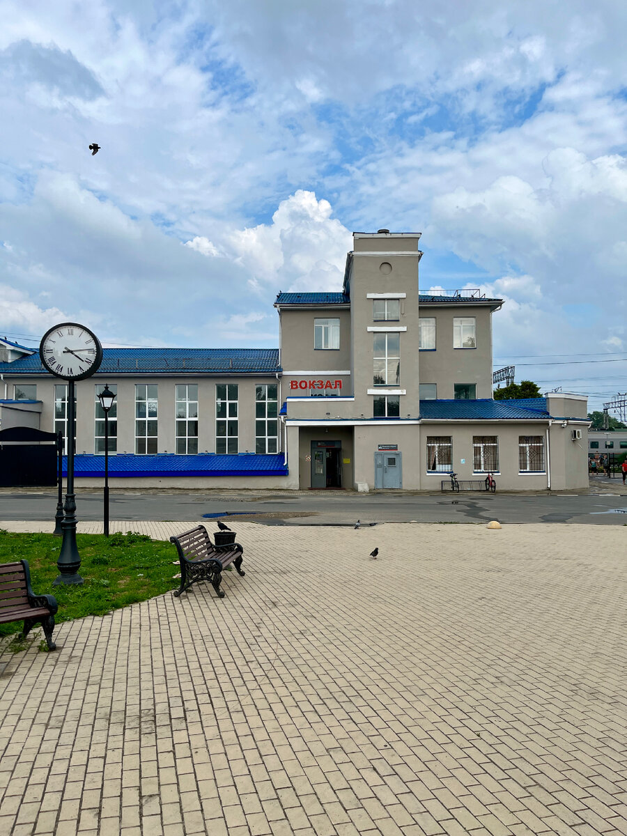 1. По традиции, начинаем прогулку по городу с вокзала. Данилову повезло оказаться на важной магистрали Москва-Ярославль-Вологда (открыта в 1872 году), впоследствии продолженной до Архангельска, поэтому, наверно, город обзавёлся редким на железных дорогах России конструктивистским вокзалом (1930):