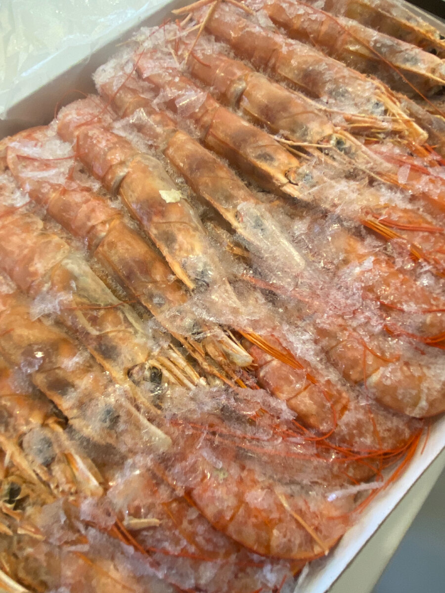 Доброго времени суток, дорогие друзья. Недавно по акции ухватил 2 кг больших аргентинских креветок, они же лангустины. Да, они уже сварены. Для правильной готовки варить их не нужно. Даём им разморозиться при комнатной температуре. Готовил я 1 кг, примерно разморозились на подоконнике за 4 часа. Вот такие монстры, с ладонь. Далее нам нужно их правильно очистить без труда и мучений. Для этого использую ножницы и кухонный нож. Смотрите пошагово на фото ниже. Отрываем голову и разрезаемся хитин до хвоста. Разрезаем ножом до нижней части креветки. Супер легко извлекаем кишечник. После подготовки всех креветок, приступаем к простому маринаду. Самый важный ингредиент - это чеснок. Креветка и чеснок, лучшие друзья. На 1 кг лангустинов 7-8 зубчиков. Солим, перчим, по желанию добавляем итальянские травы. 2 ложки моего соуса. Маринуем 30 минут, вполне достаточно для нежного креветочного мяса. Далее жарим в открытом виде, как на фото, по 3 минуты с каждой стороны. Жар средний. Получаем нежнейшие