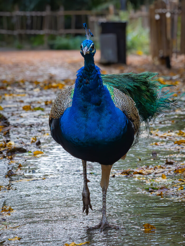 Вы думали, что павлин - это райская птица? На самом деле, это просто самая красивая курица из всех курообразных. Так или иначе с его красотой не поспоришь. Данная пташка снята в райском саду "Дендрарий" тридевятого Краснодарского края славного града Сочи. Распустить хвост гордая птица наотрез отказывалась, несмотря на все уговоры и яства, предложенные нами, простыми смертными. Петух был сговорчивее. Павлин же величаво прошагал мимо по лужам и был таков. Что сказать, курица она и в Африке Сочи курица =))) Цифры: Длина - до 125 см (до 230 см со шлейфом). Размах крыльев - до 160 см. Вес - около 4 кг. Другие райские нефантастические твари: Зяблик (г. Волгоград) Сирийский дятел (г. Волгоград) Чёрный дрозд (г. Волгоград) Белая трясогузка (Волгоградская область) Хохлатая чернеть (г. Сочи) Лысуха (г. Сочи) Красноголовый нырок (г. Сочи) Обыкновенная сойка (г. Пятигорск) Большая синица (г. Волгоград) Петух (Дендрарий, г. Сочи) Кудрявый пеликан (г. Сочи) Зяблик (г. Сочи) Фифи (Волгоградская облас