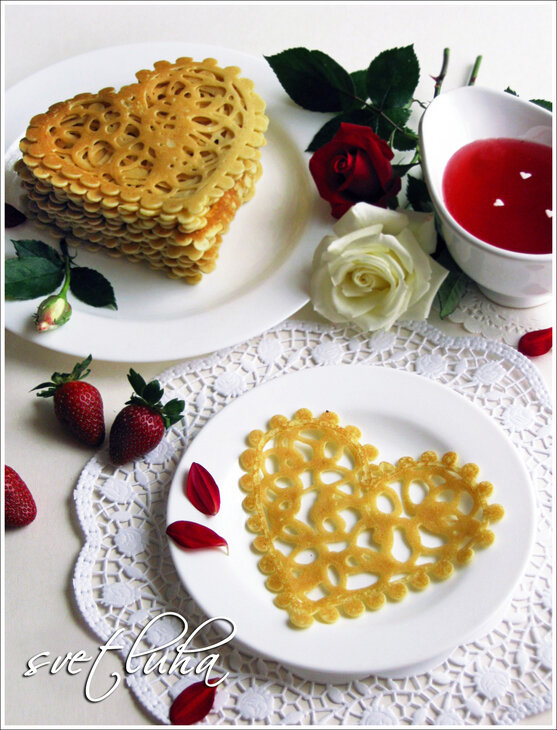 Предлагаем приготовить такие нарядные необычные блинчики, они украсят любой праздничный стол и ваши будни. Подавать с любыми добавками: джемом, сгущенным молоком, ягодным сиропом, сметаной и пр. ИНГРЕДИЕНТЫ ПРИГОТОВЛЕНИЕ 1. Половину молока заранее смешать с кокосовой стружкой и прокипятить на небольшом огне около 10 минут. Дать настояться до использования, затем процедить через сито и смешать со второй половиной молока. Яйца взбить с сахаром до получения крепкой пышной массы. 4. Молоко (с добавлением «кокосового») смешать в отдельной посуде, с помощью венчика, с просеянной мукой (ее может понадобиться больше или меньше в зависимости от качества), солью и разрыхлителем, до однородности. В конце ввести растительное масло. Добавить к молочной смеси взбитые с сахаром яйца. Смешать массу венчиком до однородности. Должно получиться пышное, пузыристое тесто. Если тесто выйдет слишком густым, будет очень трудно выдавливать его из бутылочки, если наоборот, слишком жидким, контуры сердечка получ