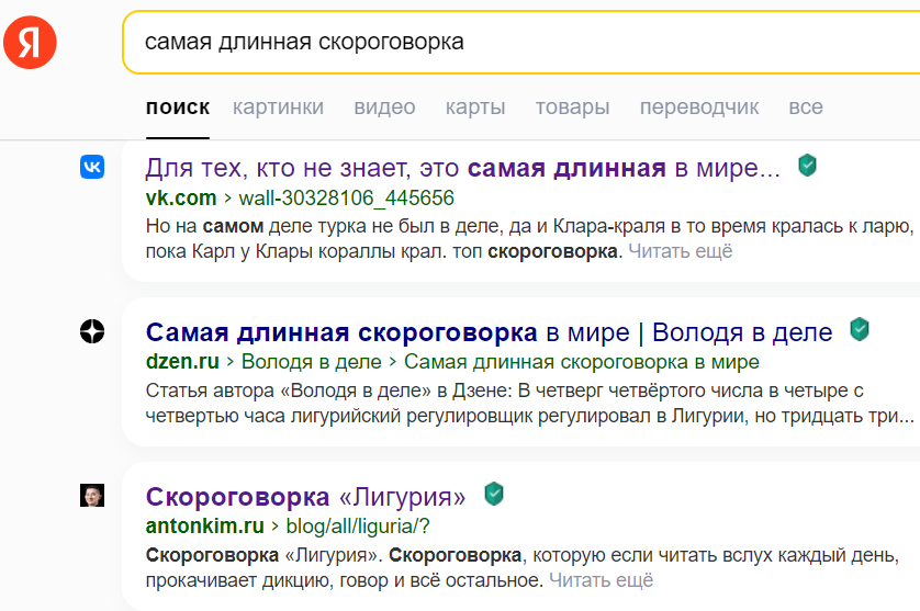 О, сколько мне открытий чудных... готовит русский язык. Казалось бы, к 70-ти годам уже можно выучить его, ан нет, каждый день что-то новенькое. Вот и сегодня меня ждало еще одно открытие. Решила доказать оппонентам, что Лигурия не является самой длинной скороговоркой, что это ошибка, заблуждение, кем-то растиражированное на весь интернет, да так, что на запрос "самая длинная скороговорка" Яндекс выдает только ее: Занялась бухгалтерией, выписала первые 16 скороговорок, которые легли в основу "Лигурии": В четверг четвёртого числа в четыре с четвертью часа четыре чёрненьких чумазеньких чертёнка чертили чёрными чернилами четыре чертежа чрезвычайно чисто.