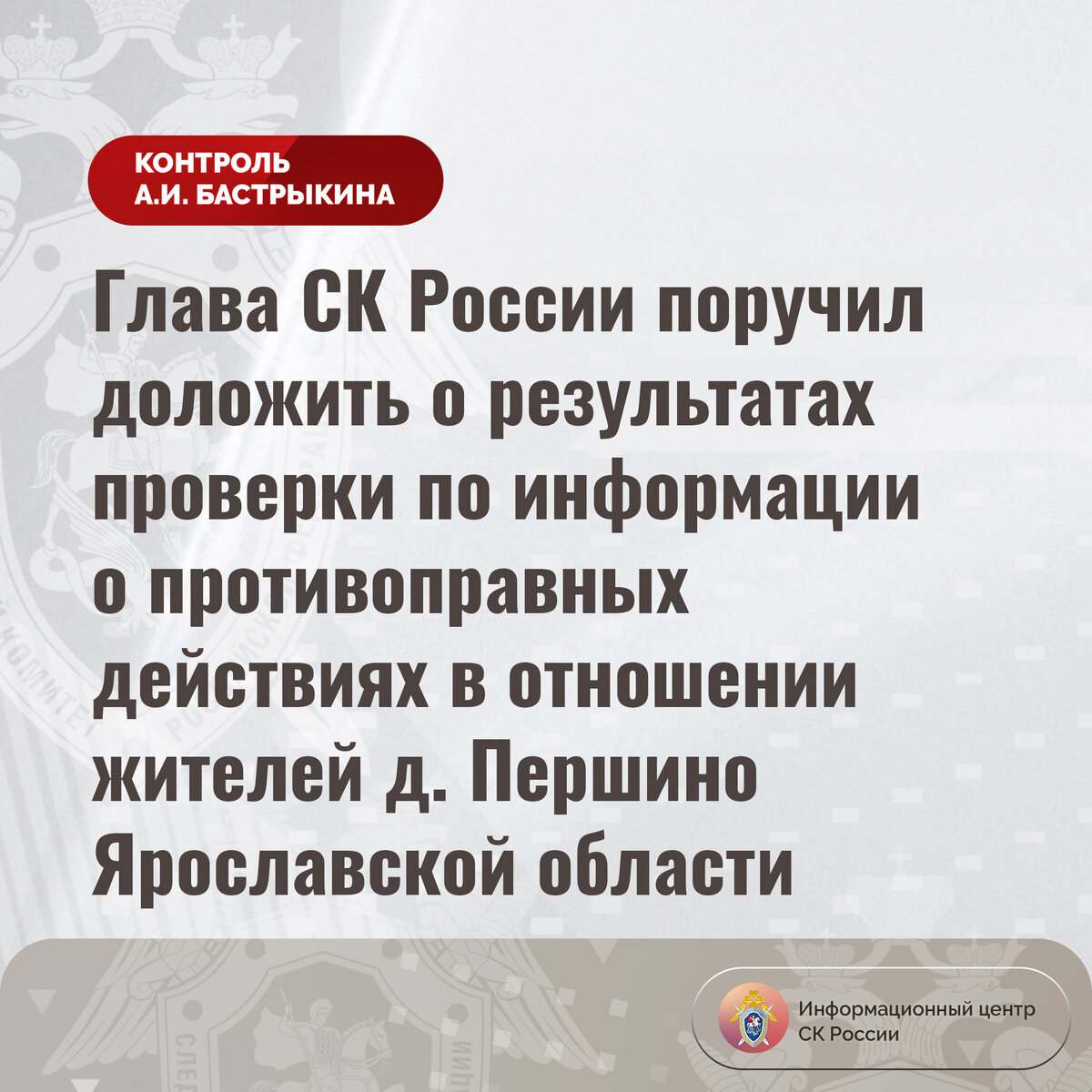 Глава СК России поручил доложить о результатах проверки по информации о противоправных действиях в отношении жителей д. Першино Ярославской области
