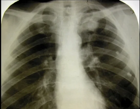 Семиотика. Рентген, КТ Термин применяют для описания видимой на рентгенограммах или на КТ/МРТ-срезах области уплотнения легочной ткани, вызванного поражением воздухосодержащей и/или интерстициальной ткани легкого (см.). Обычно такой участок имеет округлую или близкую к ней форму. Использование данного термина спорно, поскольку различные специалисты понимают его морфологический смысл по-разному. Например, рентгенолог может применить этот термин для описания воспалительного процесса, инфекционного или неинфекционного, либо злокачественного новообразования. Однако это совсем не означает, что речь действительно идет о воспалении (например, туберкулезный инфильтрат), а не об опухоли легкого. Нередко термин употребляется как синоним злокачественной опухоли с рентгенологическими признаками инфильтративного роста (нечеткие лучистые контуры, тяжи к плевре и ее утолщение, обрыв бронха в образовании и пр.). Таким образом, он не рекомендован к употреблению, поскольку для