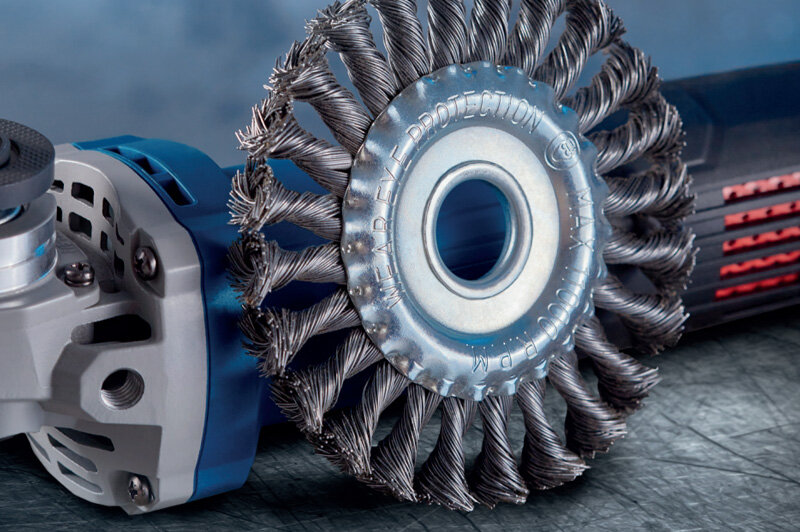 Щётки для угловых шлифовальных машин (УШМ) и дрелей – вспомогательное приспособление, предназначенное для выполнения операций дерево- и металлообработки. Нужный эффект достигается за счёт абразивных свойств и большой скорости вращения. К этим операциям относятся: Щётки востребованы в тех сферах, где применяется сам электроинструмент. Это различные отрасли промышленности, строительство, монтаж и возведение и ремонт металлоконструкций разного назначения, а также бытовая сфера. Проволока для щёток бывает кручёной и витой. Первая из них прочнее, предназначена для быстрой и грубой обработки поверхностей. Витая щетина используется для финишной обработки и шлифовки. При работе с ней появляется меньше искр. Материалы и формы Под торговой маркой KRANZ выпускаются различные виды щёток для угловых шлифовальных машин. По материалам изготовления эта оснастка делится на стальную, латунную и нейлоновую. Нейлоновые щётки дешевле, но менее износостойкие, как правило, используются для обработки дерева.
