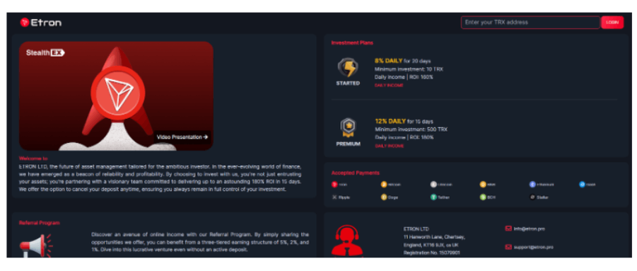 Инвестиционная платформа Etron не вызывает у нас никакого доверия, поскольку проведя проверку компании, мы обнаружили немало подозрительных нюансов.