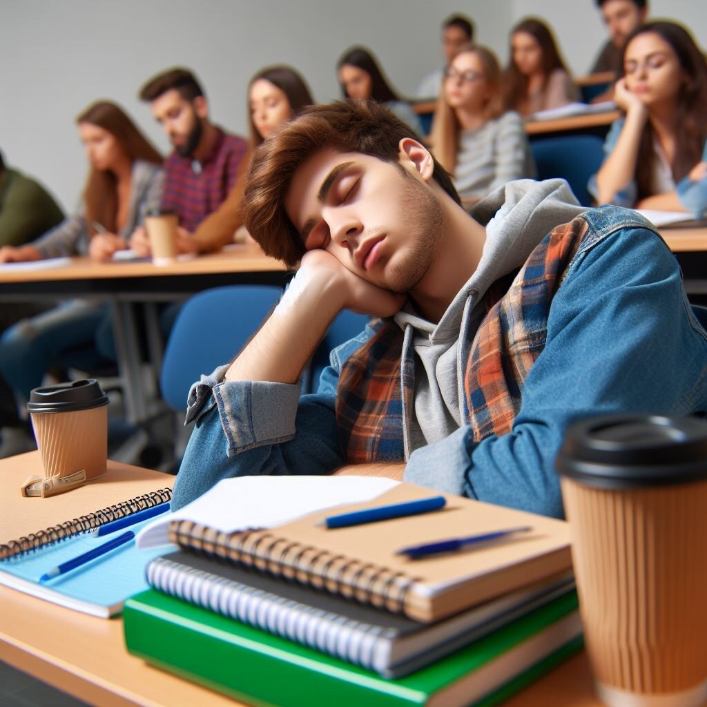 В этот день, когда учитель объяснял особенно сложную задачу, голова Майка опускалась все ниже и ниже, пока его подбородок практически не уперся в парту. Внезапно он издал громкий храп, который эхом разнесся по тихой аудитории, заставив проснуться всех, включая преподавателя.