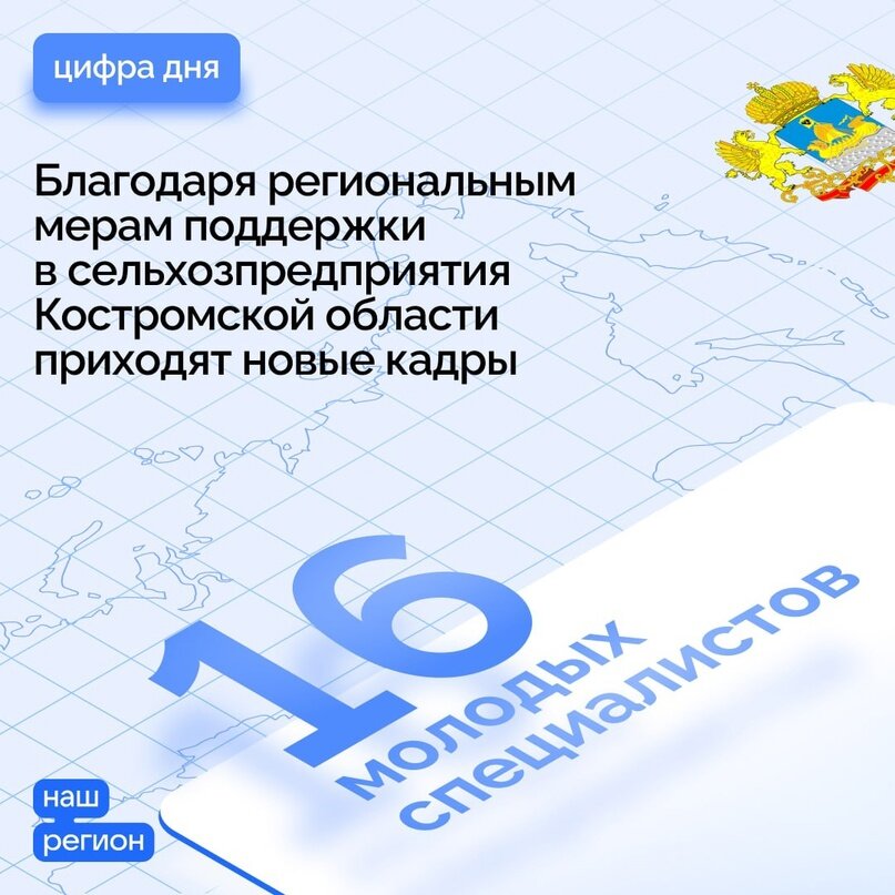 Президент России Владимир Путин в Послании Федеральному Собранию отметил важность развития агропромышленного комплекса страны, формирования эффективных инструментов для подготовки кадров. В Костромской области по поручению губернатора Сергея Ситникова реализуется комплексная система привлечения специалистов в агропромышленный комплекс. Студенты профильных учебных заведений проходят оплачиваемую практику. Начинающие специалисты АПК получают единовременные выплаты и ежемесячные доплаты. Также оказывается финансовая помощь в повышении квалификации работников агропредприятий. Опыт Костромской области по привлечению кадров в агропром отмечен на федеральном уровне в числе лучших практик. Региональная поддержка в 2023 году помогла привлечь в сферу агропромышленного комплекса 16 агрономов, ветеринарных врачей и других специалистов. Общий размер поддержки молодых специалистов составил более пяти миллионов рублей. #КостромскаяОбласть #АПК@kostromoblgov