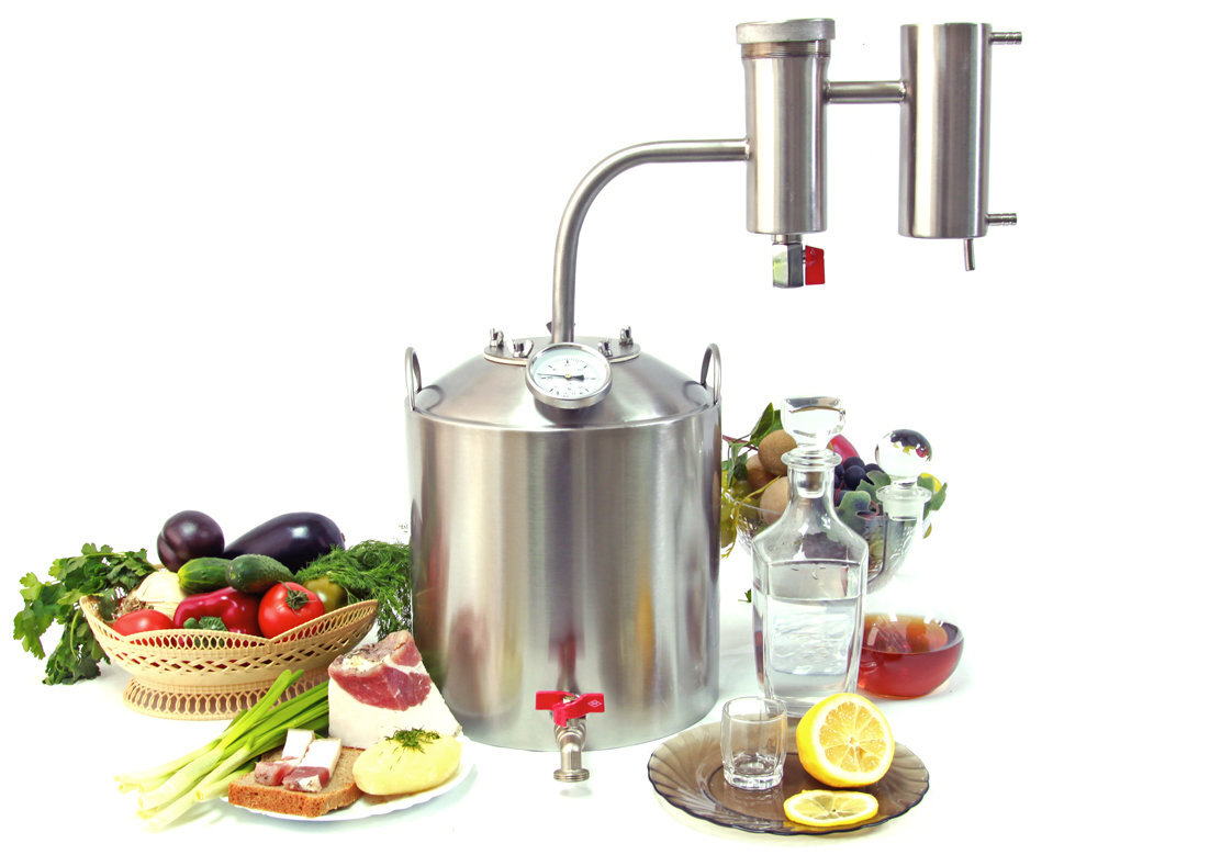 Итак, вы решили пополнить ряды домашних винокуров и сразу возникает вопрос, какой аппарат выбрать? К счастью, ассортимент оборудования для самогоноварения сейчас огромный, на любой вкус и кошелёк. Вы можете выбрать то что вам хочется, но всё же я вам рекомендую начать с самого простейшего аппарата с сухопарником. Для начала этого вполне достаточно. Возможно после первых опытов вы вдруг поймёте, что самогоноварение это не ваше. В этом случае затраты будут не такие уж большие, ну а если дело у вас пойдёт, вы всегда можете приобрести что-то более сложное. Кстати, покупать аппарат с кубом более 10-15 литров я вам не советую. Чем больше емкость перегонного куба тем сложнее контролировать процесс. В идеале вам нужен объём 12 литров, для перегона 10 литров браги. И ещё один момент. Постарайтесь найти аппарат с максимально тонкой трубкой змеевика. Это поможет вам лучше и проще осуществлять отбор «голов». Да, время перегона увеличится, но, поверьте, это совсем не критично.