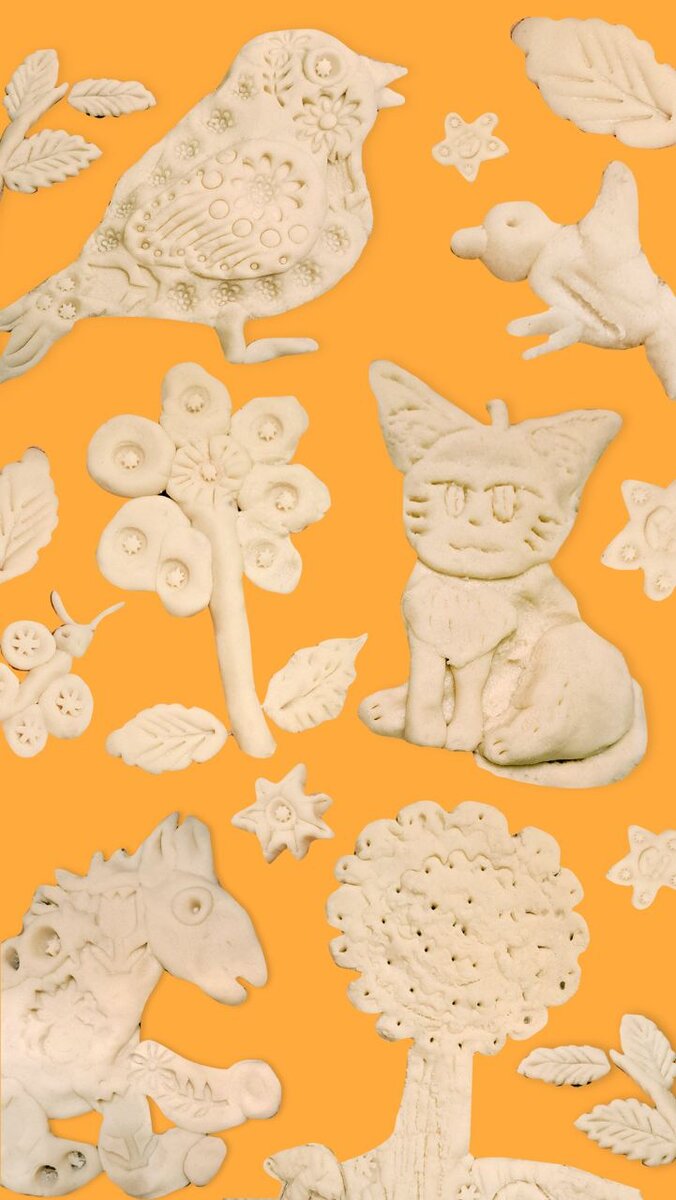 Сначала сформируйте шарик из теста, а затем лепите из него фигуры на дощечке. С помощью стеков и