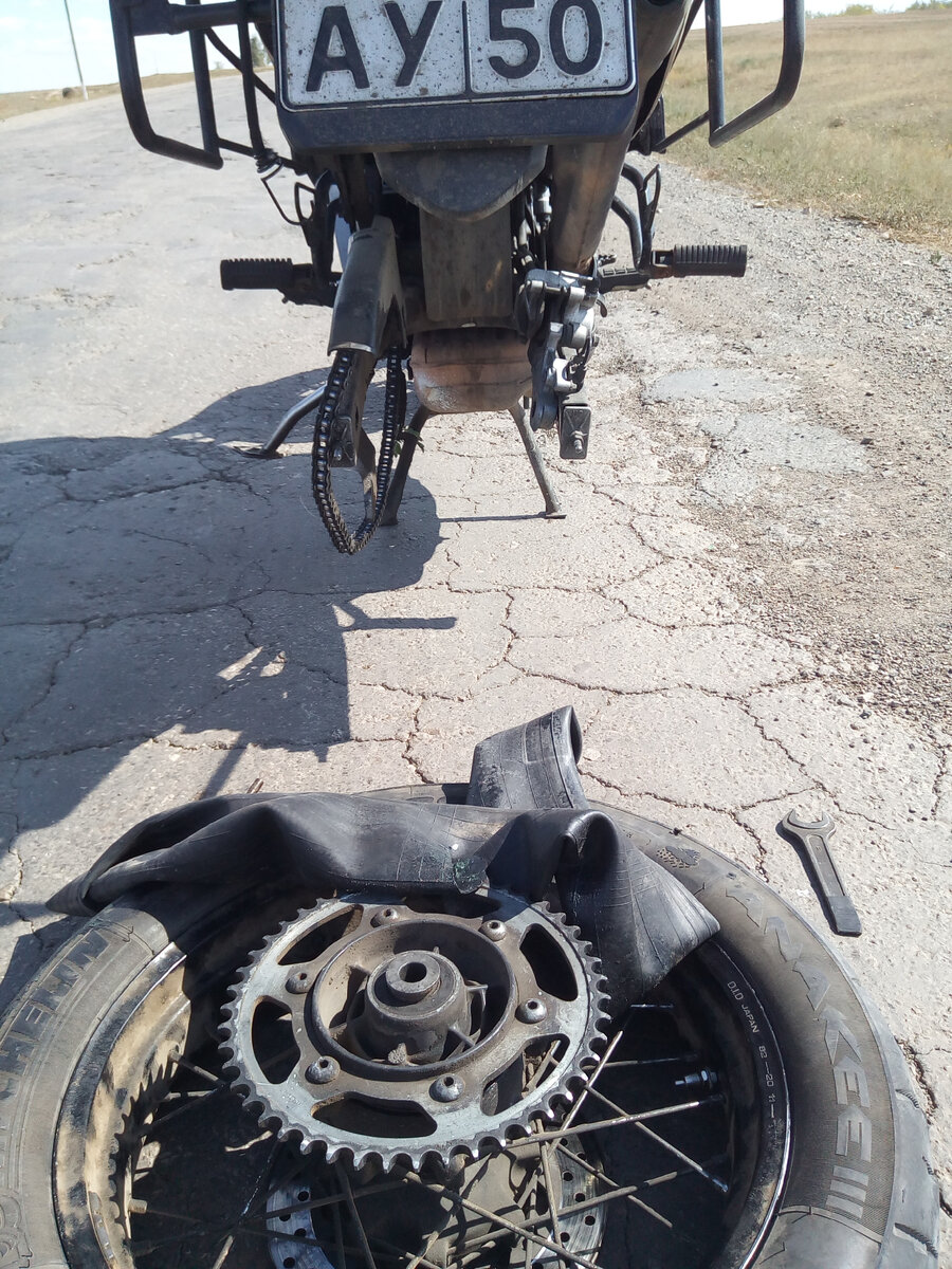 Многие читатели моих рассказов выражают мнение о достаточно халатной подготовки мотоцикла к путешествиям. Да, в этом есть немалая доля правды и из-за природной лени и приобретенного пофигизма я иногда наживал себе немало проблем на дороге. Но есть беда, от которой не застрахован даже самый педантичный мотоциклист, перебирающий свой мот до последнего болта перед каждым выездом в соседнюю область (и я сейчас не про оппозитчиков). Это прокол колеса, который и на автомобиле может создать немало проблем, несмотря на наличие запаски и прочего добра, а уж на двухколесной технике некоторые люди решают проблему пробитой шины вызовом эвакуатора. Очень уж богаты наши дороги на всякие коварные железяки, а уж если вы регулярно съезжаете с асфальта, чтобы радостно ввалить по острому скальнику, поймать острый камушек - это дело времени.