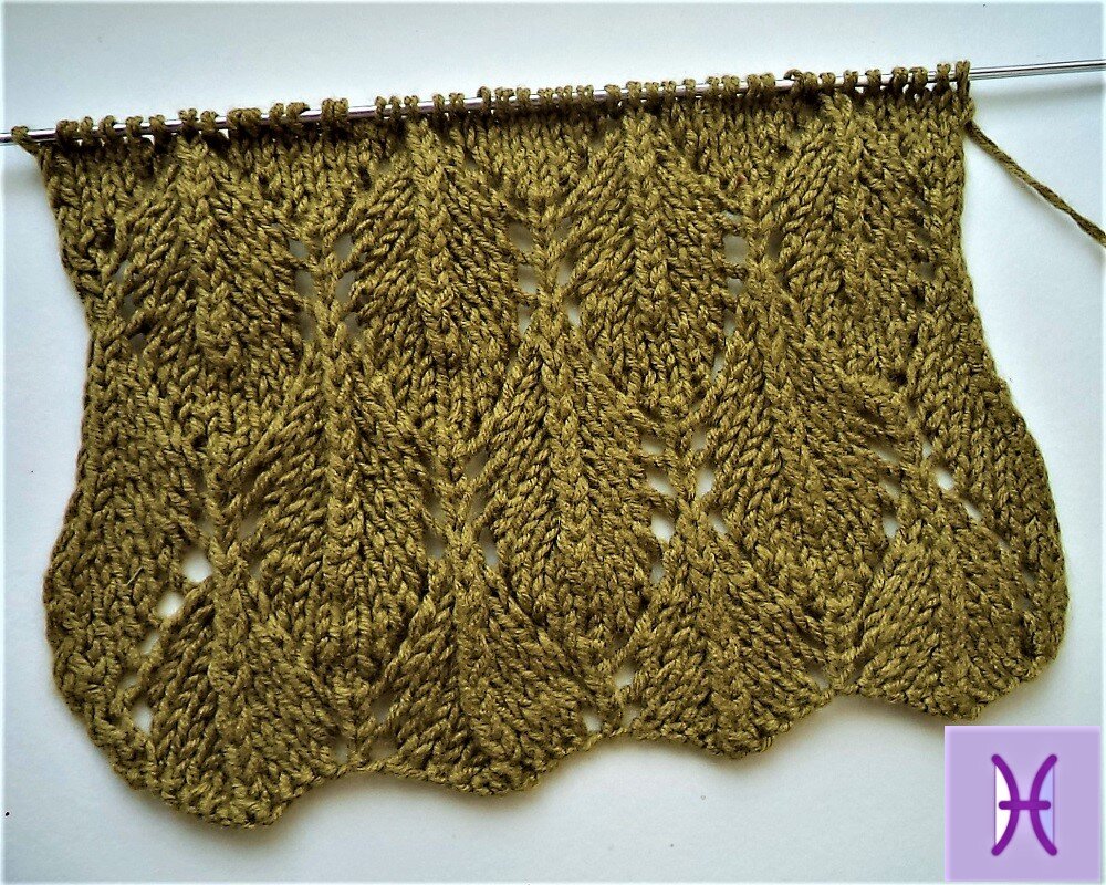 Позвольте представить шикарный узор. Подойдет для любого вашего проекта. Узор не сложный. Справятся и начинающие. Узор Листики. Подходит для вязания любого изделия. Особенно хорошо подойдет для вязания шарфов, палантинов, а также каймы на юбке. Описание вязания. Раппорт равен 10 петлям по ширине и 23 рядам по высоте. Количество петель в наборе кратно 10 плюс 1 петля для симметрии плюс 2 кромочные петли. 1-й ряд: кромочная, 1 лицевая, * накид, 3 лицевые, 3 петли вместе лицевой, средняя спереди, 3 лицевые, накид, 1 лицевая,*кромочная 2-й и все четные ряды: вязать изнаночными петлями 3-й и 5-й ряды: вязать, как 1-й ряд 7-й ряд: 1 лицевая, * 1 лицевая, накид, 2 лицевые, 3 вместе, 2 лицевые, накид, 2 лицевые,* кромочная 9-й ряд: 1 лицевая, * 2 лицевые, накид, 1 лицевая, 3 вместе, 1 лицевая, накид, 3 лицевые, *кромочная 11-й ряд: 1 лицевая, * 3 лицевые, накид, 3 вместе, накид, 4 лицевые, * кромочная 13-й ряд: 2 вместе лицевой за задние стенки, * 3 лицевые, накид, 1 лицевая, накид, 3 лицевые