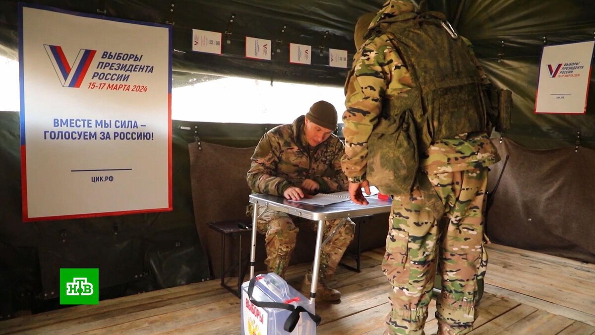 [ Смотреть видео на сайте НТВ ] Голосование за президента России идет сейчас и в зоне проведения спецоперации, а также в приграничных районах. Глава Минобороны РФ Сергей Шойгу и начальник Генштаба Валерий Герасимов приехали на один из избирательных участков Южного военного округа. Вместе с военнослужащими объединенной группировки войск они заполнили бюллетени и опустили их в урну. Свой выбор сделали и военнослужащие, которые находятся в зоне СВО. Многие из них проголосовали досрочно. Кроме того, для удобства бойцов избирательные участки оборудовали прямо в блиндажах и тыловых районах. Процесс голосования проходил с полным соблюдением выборного законодательства. [ Смотреть видео на сайте НТВ ]
