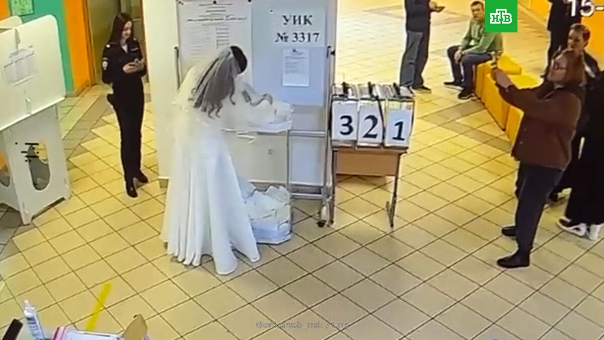 [ Смотреть видео на сайте НТВ ] Молодожены проголосовали на одном из избирательных участков Москвы. В Москве пара молодоженов совместила свадьбу с участием в выборах президента России. Молодые люди проголосовали на одном из столичных участков. В Общественном штабе поделились видео, где невеста в свадебном платье опускает бюллетень в урну. Избиратели в столице активно голосуют и очно, и онлайн, отметили в штабе. К 16:00 проголосовали 2,3 миллиона человек. Выборы президента России проходят с 15 по 17 марта. Отдать голос в Москве могут горожане с постоянной регистрацией, а также жители других регионов, которые заранее подали заявление, чтобы прикрепиться к избирательному участку. Всего в городе работают более 2,2 тысячи участков. Они открыты с восьми часов утра до восьми вечера все три дня. Также доступно дистанционное электронное голосование. Воспользоваться им могут те, у кого есть постоянная регистрация в столице и полная учетная запись на mos.ru. Отдать голос таким образом можно до 20