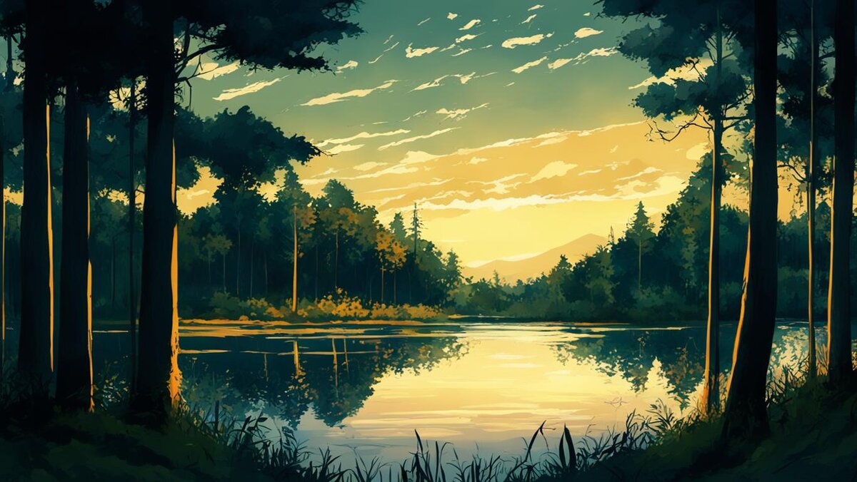 Автомобиль въехал на небольшой пригорок между двух высоких сосен; Юрка заглушил двигатель. Ребята остановились у края уютной полянки, перед неподвижным озером, мерцающим под солнцем тысячами разбросанных по темно-синей глади бриллиантов.
