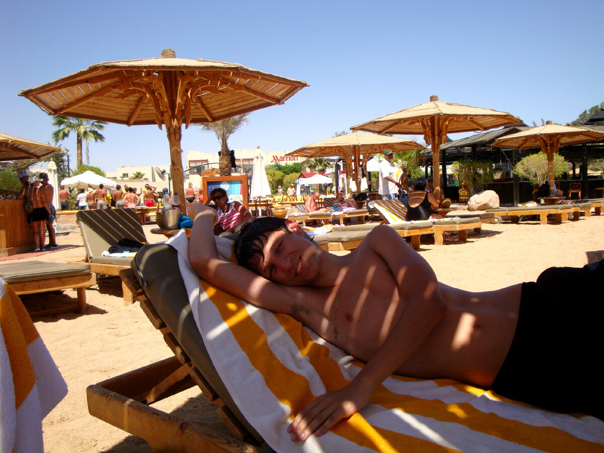 Пока я откисал в Красном море , мои корефаны познакомились с 2 девчонками с Нижневартовска. Выйдя из моря в лучах египетского солнца из моря, я вклинился в разговор банальным вопросом :"А как же вы там зимой живете?", "Да нормально живем, к холодам привыкшие . А приежайте к нам в январе отдохнуть на неотапливаемую дачу)". Потом девчонки ушли , а я смотрю , стоят те самые блондинки-итальянки прям у воды и по очереди фоткают друг друга . "Надо подлетать"- молнией проскочило в голове и я направил свои ноги к пляжу. Мой план был таковым :постоять секунд 20 типа я не при делах рядом с ними , а потом на русско-итальянском :"Девчонки , а давайте-ка я вас 2 сфоткаю" и там само пойдет общение. Но как раз на где-то 18 из этих 20 секунд они .... развернулись и пошли к лежакам . Черт ! Не получилось . Подхожу к своим бойцам , а они ржут : "Ну что, цепляльщик, подцепил ??!!". Досадно, но ладно-ладно-ладно. Кстати, это была не последняя попытка наладить контакт Россия-Италия.