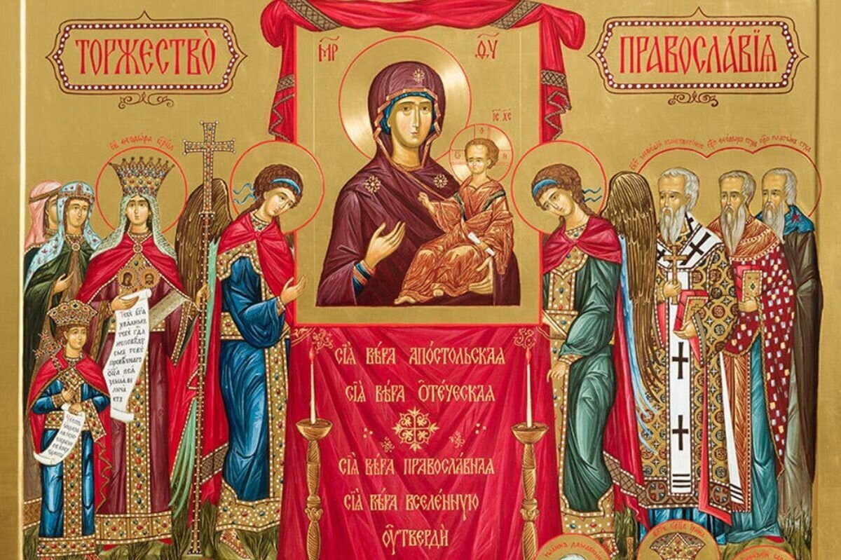 Праздник возник в 843 году в честь окончательного установления в Православной Церкви почитания икон после длительного периода иконоборчества. Икона стала зримым свидетельством реальности Боговоплощения. К XI веку в Церкви сложился и особый чин Торжества Православия. В этом чине утверждается истинное прославление Бога, согласное учению Церкви. В современных реалиях Торжество Православия надо также понимать как некий личный итог начала Великого поста. Единственный и главный итог не только первых дней поста, но и всей жизни христианина – это радость и мир во Святом Духе. Если человек прошел этот этап хорошо, больше молился и