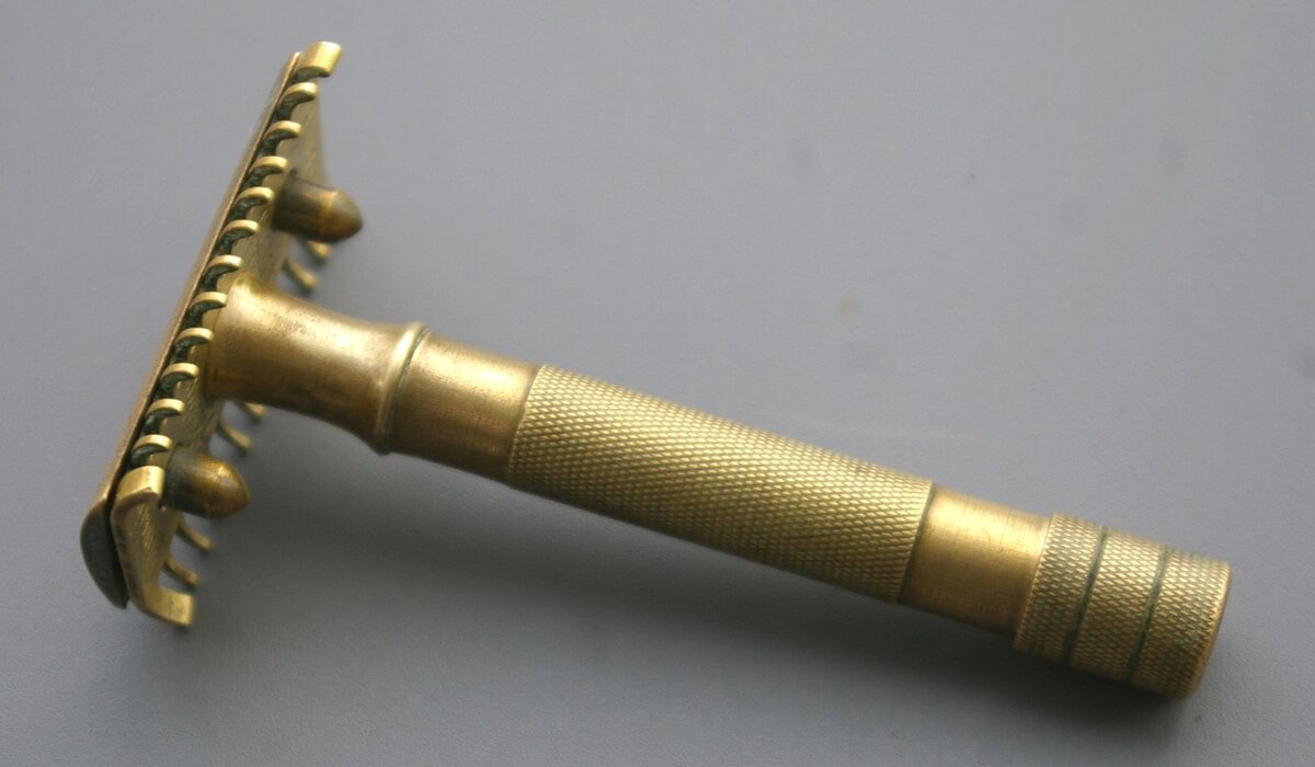 Бритвенный станок марки "Khedive", клон "Gillette Old Type", как было принято в Золингене в начале ХХ века. Бритва изготовлена компанией "Balke & Schaaf KG" на фабрике "Atlantic-Werk" в Золингене. Компания была основана в 1897 году Эрнстом Балке и Августом Шаафом. Фабрика выпускала высококачественные складные и охотничьи ножи, ножницы, столовые приборы, маникюрные инструменты, машинки для стрижки волос и, конечно, бритвы. На "Atlantic-Werk" было выпущено великое множество бритв различных марок. Марка "Khedive (Хедив)" была зарегистрирована в 1904 году, причём, на кириллице. Компания поставляла в Россию также бритвы марок "Ермак", "Надежда" и "Онегин". У компании "Balke & Schaaf" весьма оригинальный фабричный знак - овца на толстой доске. В "переводе" на русский название компании звучит как "Балкин и Овечкин". Господа обладали юмором. Теперь насчёт "Хедив". Вот что пишут в Википедии: "Хеди́в (осман. خدیو [hɯ'div], араб. خديوي) — титул наместника Египта, существовавший в период зависимо