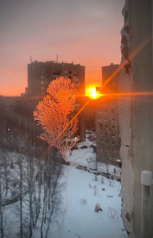 Это волшебное дерево появилось пару дней назад, и вдруг, дерево стало сказочно-золотым, это время называют «Золотой час». Рассвет это любимое время многих - особенно художников и фотографов. Я одна вижу это, потому что какой то волшебник нарисовал его на нашем окне. Хорошо, что мой айфон видит его тоже) 38