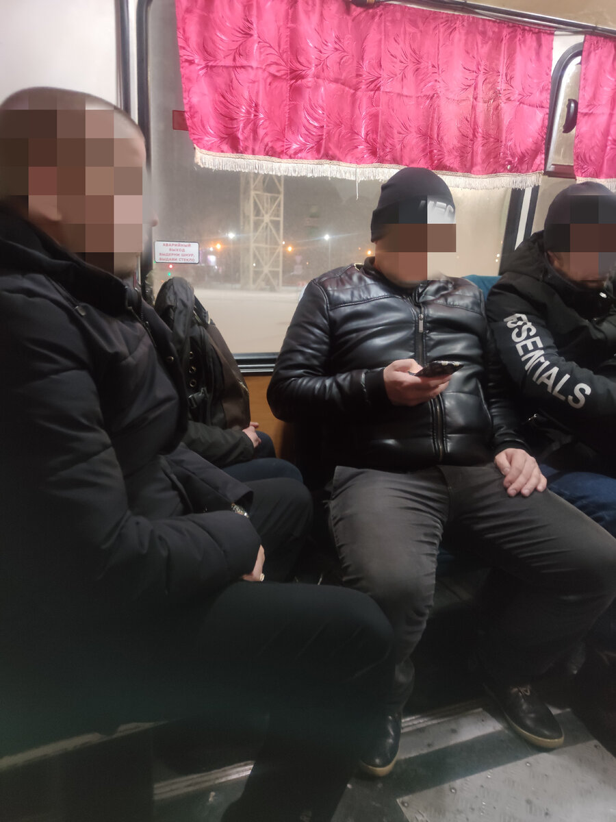 В нашем районе по субботам в основном работают мигранты. Полный автобус.