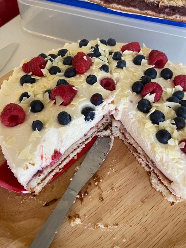 Ингредиенты :🧑🏼🍳 для коржа: для крема: Приготовление: Для коржей: 1️⃣Белки взбить отдельно с щепоткой соли. 2️⃣Желтки смешать с сахзамом, разрыхлителем и йогуртом. 3️⃣Соединить аккуратно белки и желтки. Вылить на силиконовый коврик и выпекать 7-9 минут при 180 гр. (Как только потемнеет вытаскивайте.) Для крема: 1️⃣смешать йогурт с сахзамом. 2️⃣Режем корж на 4 части и смазываем кремом, кладем банан. (И так каждый слой) 3️⃣Последний смазываем кремом и посыпаем малиной и миндальными лепестками. Готово!✅❤️