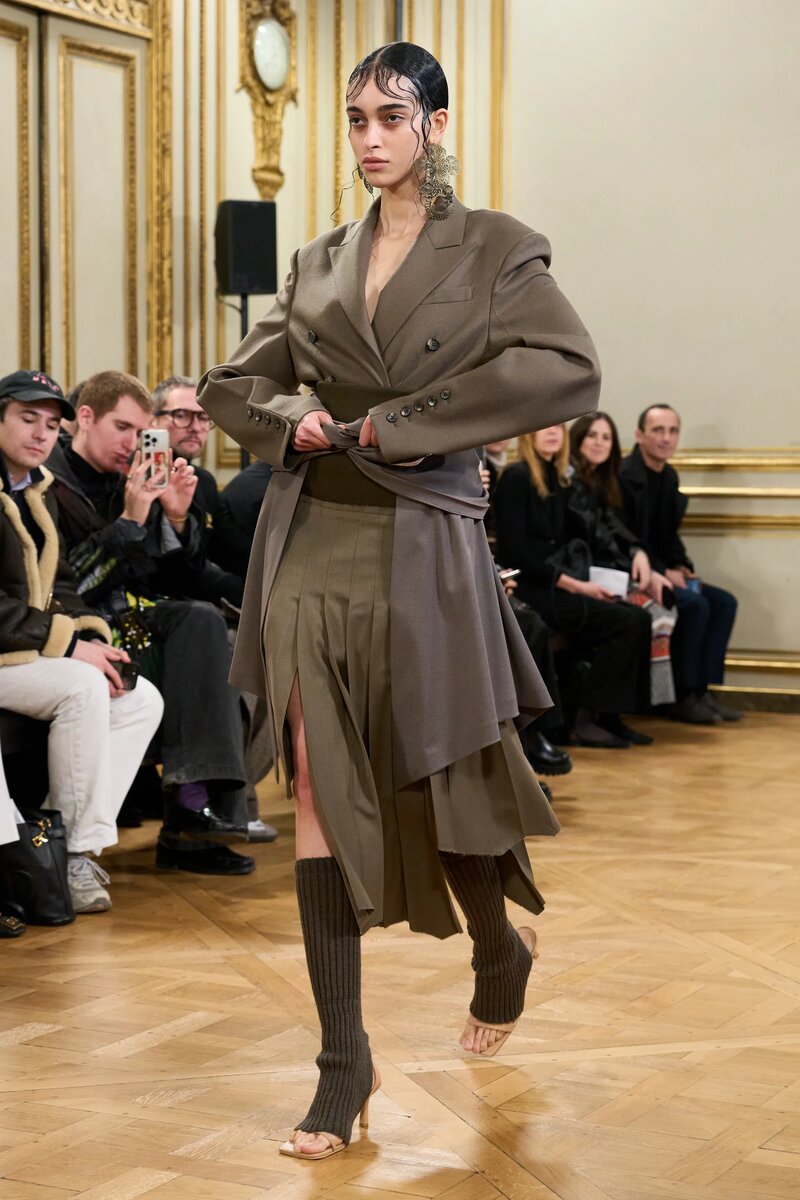 Мой любимый корейский бренд в этом сезоне разочаровал, потому что в какой-то момент он свернул не туда. Дорогой Рок Хван, ты делаешь уникальные вещи, ни на что не похожие, у тебя свой стиль и свой голос, ну не уходи ты в такое, пожалуйста, вернись к истокам! Он сказал о своих вещах, что ему нравится видеть людей на улице в Rokh: «И все они выглядят отличными друг от друга и от того, как это показал я в своей коллекции. Людям нравится адаптировать то, что я делаю» У него реально крутые вещи! И даже в этом показе, если разобрать образы на составляющие, можно создать что-то вполне себе носибельное на каждый день и с изюминкой при этом :) В сезоне Осень-Зима 2024-2025 мы видим каких-то утопленниц, вылезших со дна океана. Кстати, причёски у них классные, у многих дизайнеров в этом сезоне классные причёски, может собрать их в одну подборку? На этот раз Рок обратился к эпохе Возрождения и романтизму: «Возрождение было связано с поиском идеальной формы тела, которая для меня олицетворяет совер