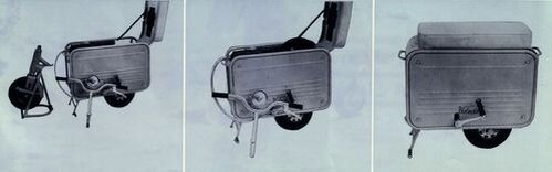 Модель фартука вот она. Его дополнительный кузов на передних концах, над колесом, с неподвижным брызговиком, образующим пол, подставкой для ног сзади. Этот аксессуар позволяет ему немного больше походить на стандарты конкурентов того времени.
