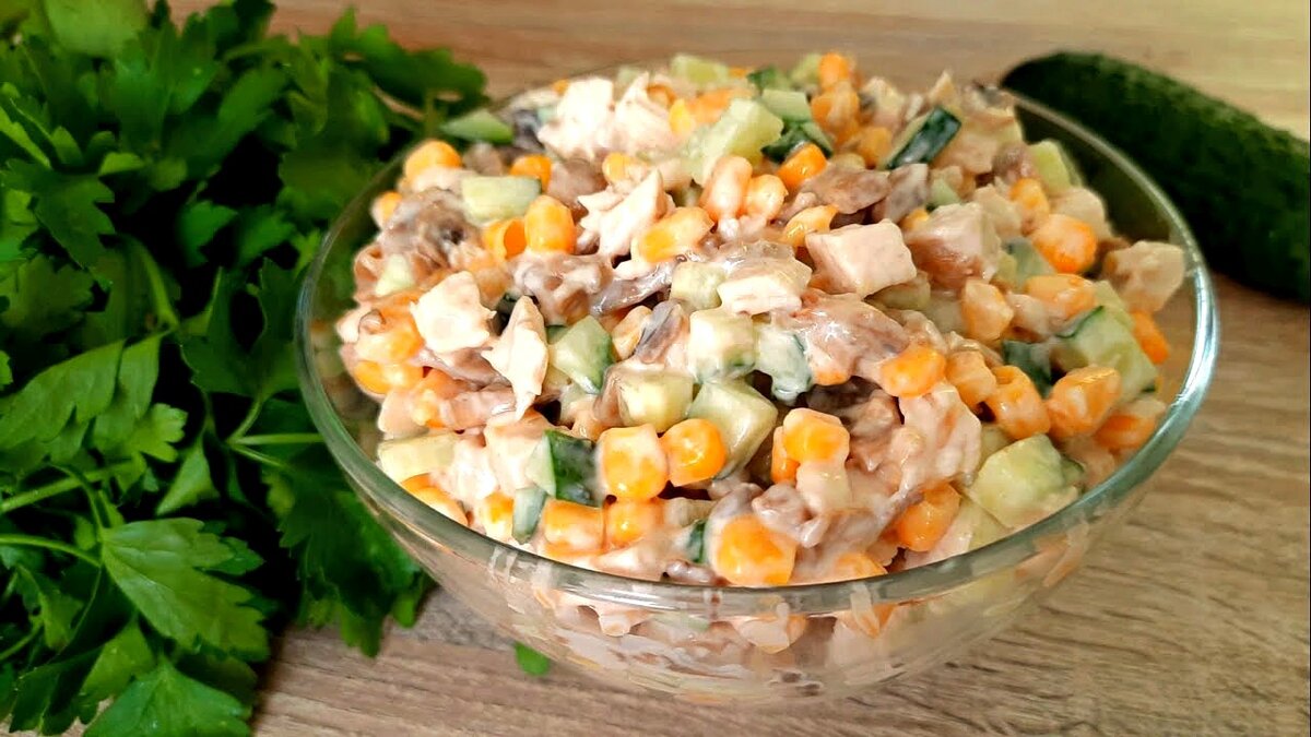 Если вы решите приготовить какой-нибудь новый и красочный салат на праздничный стол или в будни, то остановите свой выбор на салате "Зодиак", отличающемся сочностью, грибным ароматом и букетом вкусов. Все ингредиенты блюда идеально сочетаются друг с другом: огурец привносит сочность и свежесть, жареные грибы - аромат, отварные куриные яйца и филе дарят сытность, а консервированная кукуруза - цвет и легкую сладость.
