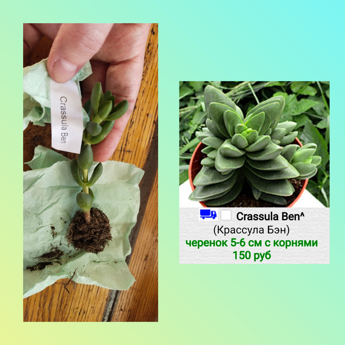 Крассулы занимают большую часть моей не маленькой коллекции суккулентов.Сейчас, конечно это уже более интересные и ценные. Но к ним я пришла уже позже. Начиналось всё с очень простенького и дешёвого. Свои первые суккуленты я купила набором. Получила их почтой. Женщина-продавец, узнав, что это мои первые, положила и подарочки, и советов много дала. Вот в этом видео мои самые первые растения.⬇️⬇️⬇️ Пересмотрела сегодня с ностальгией. И даже рассмеялась на фразе, "занимают мало места"! Эх, как наивна я тогда была, думая, что всё закончится 20-тью штуками. 🤣🤣🤣 Рассказа мне продавец и о том, где сама суккуленты покупает недорого. Дала ссылку на сайт Петра Лапшина. У него я и сделала свою вторую покупку. Набрала тогда аж на 6т.🤦♀️ Огромное количество очень простых и дешёвых суккулентов. Среди них была и героиня моей сегодняшней статьи. КРАССУЛА БЭН. Именно так она выглядела, когда почти 2 года назад, у меня появилась. Я безумно радовалась. Думала, что очень скоро она станет такой, ка