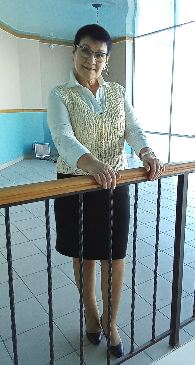 Маленький ажурный жилет с V- образным вырезом, на 4 пуговицах.