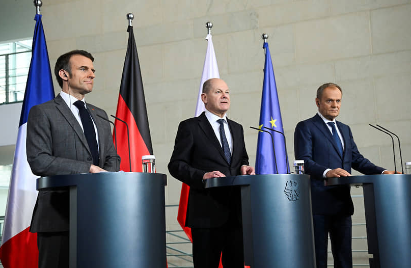 После начала боевых действий на украинских территориях страны «Большой семёрки» (G7) заморозили активов Центрального банка России на близкую к 300 миллиардам долларов сумму, 207 миллиардов долларов из которых, по данным Financial Times, хранятся в бельгийском депозитарии Euroclear. В феврале глава Европейской комиссии Урсула Фон дер Ляйен предложила использовать конфискованные активы для оказания военной помощи Украине, ведь это будет способствовать предотвращению последующих расходов на восстановление украинской инфраструктуры. Канцлер Германии Олаф Шольц после встречи «Веймарского треугольника» с президентом Франции Эмманюэлем Макроном и премьер-министром Польши Дональдом Туском заявил о достижении договорённости по закупке большого количества оружия для Украины на всём мировом рынке. Примечательно, что французский президент ранее выступал против закупки оружия за пределами Европы, но, по всей видимости, сейчас всё-таки осознал невозможность покрытия украинских военных потребностей в