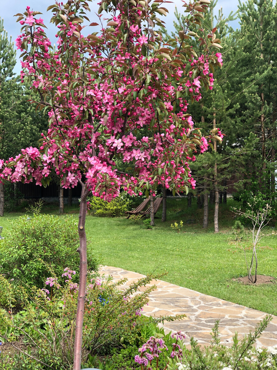 Я мечтаю еще хотя бы об одной декоративной яблоне. Присматриваюсь к Роялти, очень нравится ее эффектная краснолистная крона.