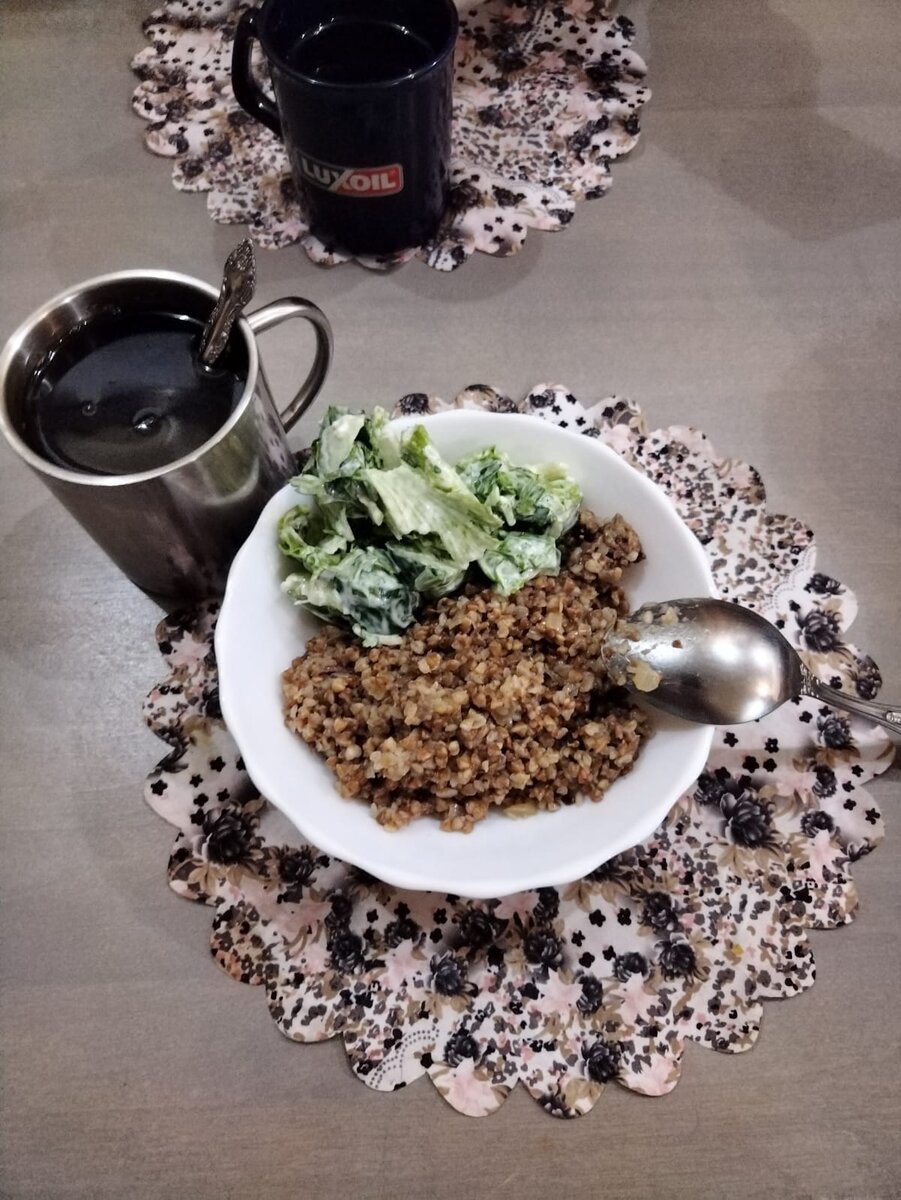 Ингредиенты : Греча крупа- 1 упаковка (800гр.) Тушёнка говяжья (у меня в этот раз была "Экспедиция") - 2 банки Лук репчатый крупный - 1 штука Масло растительное -50 гр Масло сливочное 82,3% - 100 гр. Берём пачку гречки, промываем в кастрюле под холодной водой Затем заливаем холодной водой на 2 фаланги указательного пальца и ставим на огонь (на плиту) на средний нагрев. Сразу открываем 2 банки тушёнки и вываливает в кастрюлю с гречкой с холодной водой, закрываем крышкой и оставляем вариться. Лук чистим моем режем кубиками На нагретую сковороду наливаем растительное масло и начинаем обжаривать лук. Когда лук станет "прозрачный", добавляем сливочное масло в сковороду и дальше жарим до золотистого цвета. Перекладывает лук в кастрюлю с гречей. Проверяем что в кастрюле нет жидкости , перемешиваем. Гречневая каша готова Приятного аппетита Бюджет данного блюда у меня составил 489 руб.