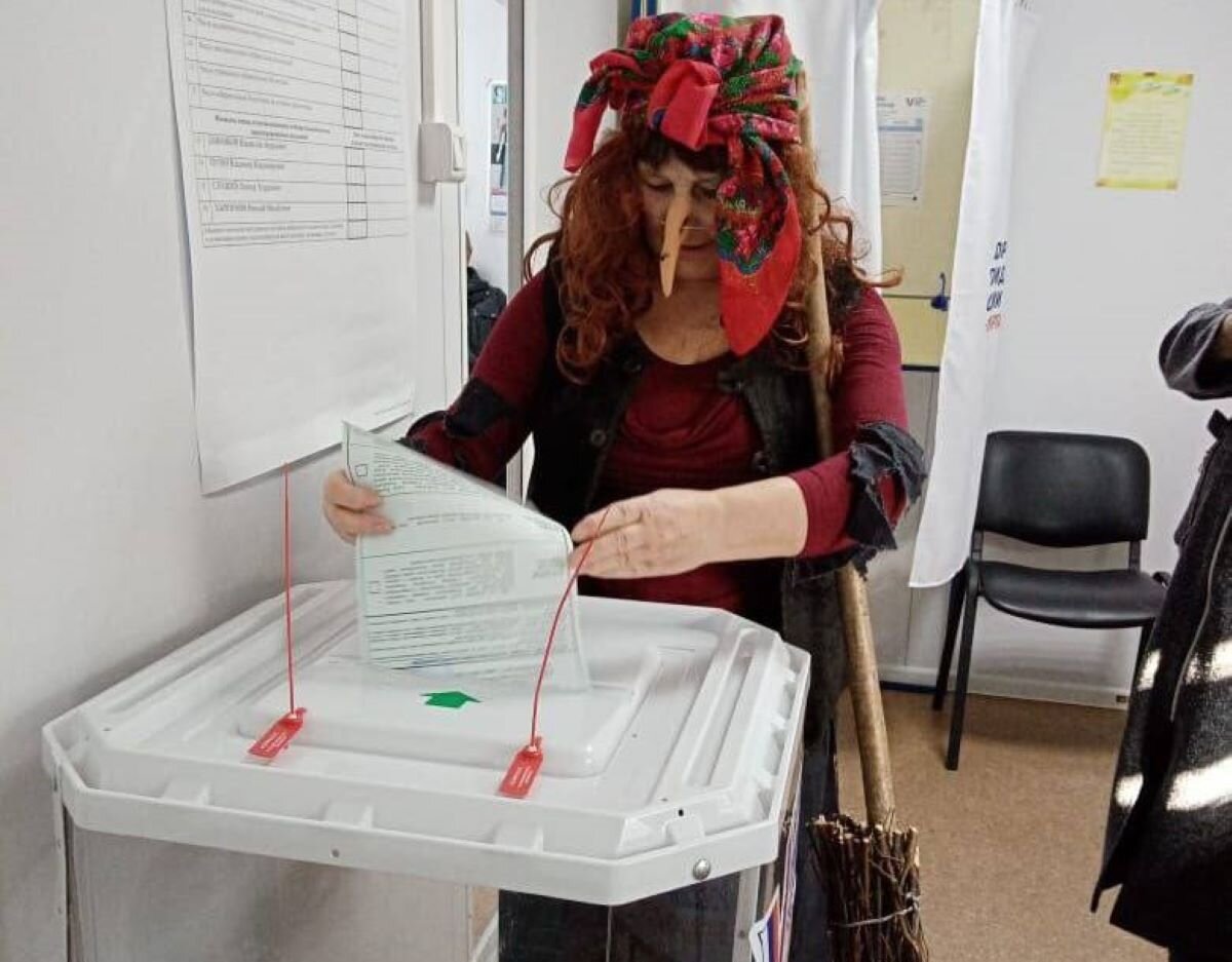 Накануне на избирательном участке в Калуге был замечен маскот областного Минприроды выхухоль Хохуля. В его костюме в выборах поучаствовал сотрудник областного Минприроды. "Хохуля - тоже человек. Он хочет проголосовать на выборах президента России. Поэтому приход на избирательный участок - это и личная инициатива сотрудника министерства, и популяризация выборов", - прокомментировали РИА "Новости" это происшествие в министерстве. Фото: PostNews А 16 марта глава администрации Ферзиковского района Алексей Волков выложил на своей странице Вконтакте фотографию голосующей женщины в костюме Бабы-Яги. "В этот раз Баба Яга не против!", - написал чиновник.