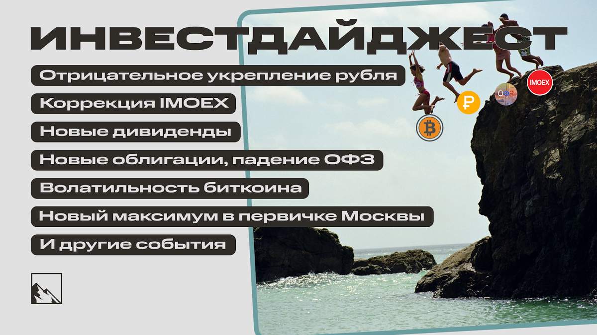 Снижение биткоина, рубля, индекса и ОФЗ. Новые дивиденды, размещения облигаций, IPO и другие новости. Воскресный инвестдайджест